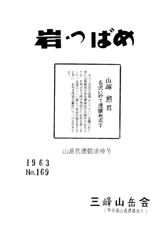山越勲君 岳沢に於いて遭難死去す