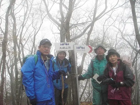 大月駅に朝集合し、駅のそば屋で朝めしを食い直し、タクシーに乗って大峠へ向かう。天気はやはり悪い。タクシーは真木鉱泉を過ぎて行く。リーダーは「山やめて入って行こうか」とでも言うのかと思い期待したが、そういうお言葉もなく、なおも進む。板倉鉱泉への別れ道も悲しく通り過ぎた。紅葉も終わりかけだが、晴れていればまだ良いかも。