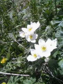 さて、これから待望のクライミングだ。取付きの岩の前に立つが、本やネットで見た赤茶けた岩のクラックがない。どうやらbガリーの取付きは雪渓で埋まっているようだ。レディースチームが登攀準備をしていると、一番手のオギちゃんが登り始めた。が、暫らくすると途中で引き返してくる。どうやらルートが判りにくいらしく、違うルートに入ってしまったようだ。再度登りなおし。今度はスルスルとロープが出て行き、セカンドのタケチャンも軽やかに登っていく。いよいよレディースチームもクライミング開始!最初は私がトップ。出だしにもたつくがどうにかオギちゃんがビレーしている所まで辿り着く。狭い場所で2人分しかスペースがないため、オギちゃんが登り始めてから支点を取り直し、セカンドを上げる。2P目は今回アルパインデビューのオオマサがトップ。オオマサが登り始め、暫くすると「支点がないんだけど~」と声がする。メンズチームはサッサと登っていってしまったようで、人の姿も次の支点も見つからず困っているようだ。自分のところからはオオマサの姿もルートも見えない。オオマサ頑張れ!しばらく止まっていたロープがゆっくりと出て行く。緊張でビレーしている手のひらにじっとり汗が出てくる。「ビレー解除」の声を聞いた時はホッとした。セカンドで登っていくと途中からルートが左にトラバースしていた。木に支点をとってあるもののリードでのトラバースは怖かっただろうと思う。よく頑張ったよね。メンズチームはこのルートを直登し、早々に2P目を終え私たちをずいぶん待ったそうだ。ヘロヘロになってしまったレディースチームは2ピッチであえなく解散となり、4尾根下部より男女混合、オギちゃんチームとタケちゃんチームでロープを結び直しスタート。