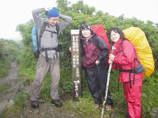 今日の行動予定は竜門山、西朝日岳を越えて大朝日小屋までだ。いざ、出発だぁ。出発時には雨は降っている気がしなかったのでそんな嫌な気分ではなかった。しかし、雨具は着て行った。流石に百名山の山だ、登山道はしっかり整備されている。箭内、権、澁谷、アッコさんの順番で登って行った。ずっと登りなので、できるだけゆっくりペースで歩いて行った。30分後、レイヤード。衣服、荷物等の調整をした。澁谷さんの顔、全面から汗がプチプチと噴き出し、その汗が鼻先、あご先から滴り落ちていた。リックを持ち上げたら何が入っているのだろう、やたらと重い、一つ二つの荷物を箭内のリックに入れ、アッコさんのリックを澁谷さんが担ぎ、澁谷さんのリックをアッコさんが担ぐようにした。