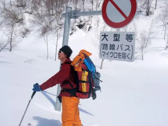 山頂直下の傾斜はパウダーで気持ち良い。小屋からの下りは怖いので私はツボ足で降りる。独標1763mからの大斜面は爽快な滑りが楽しめた。その後はもう足がパンパンになり、随分と時間をかけながら下ることになってしまった。特に、も吉さんや成田さんには待ってもらうことが多くなり、迷惑をかけた。道行山の下りはヘタクソなのに加え雪の状態も悪くなり、ターンの度に転びながら下る始末。やっとの思いで幕場に着いたが、既に先行隊(三澤さん他)がテントを撤収してくれており、大変助かった。更に1時間、シルバーラインの閉鎖時間と闘いながらなんとか時間内に銀山平に辿り着くことが出来た。
