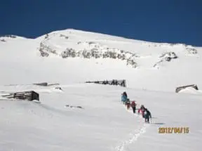 | 【4月14日】 | 中の茶屋(幕営) → 馬返し(8:00) → 佐藤小屋(12:00)【幕営】 |