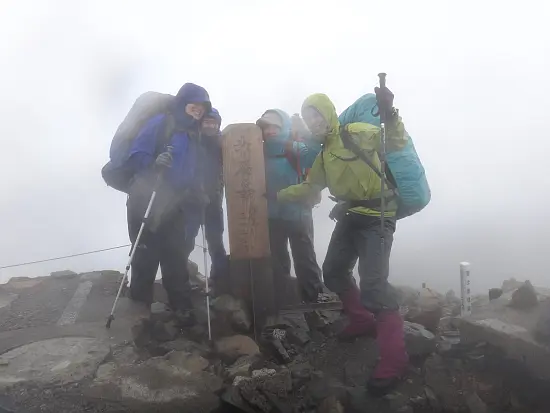 ところが、標高3,000mを超えた稜線上では暴風雨となってしまい、物凄い風が吹きつけてきて、油断すると飛ばされそうな勢いだ。一番華奢な津田ちゃんは大丈夫だろうかと一瞬心配になったが、暴風に煽られながらも、ガッツで登っていく姿はとても頼もしく、全く心配する必要はなかった。