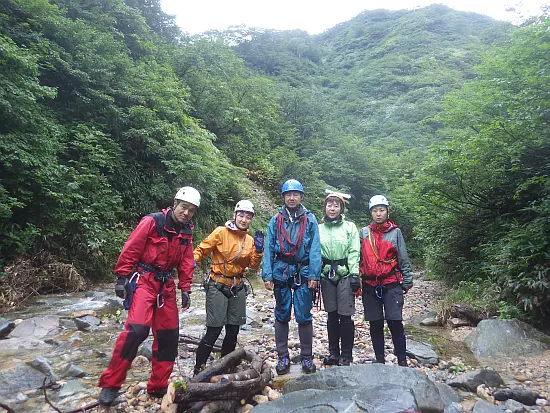 | 【9月6日】 | 駐車場(7:00) → 入渓(9:30) → うなぎ淵(10:00) → 抱き返り滝(12:00) → 10m大滝(14:30) → 2段12mの滝(16:00) → 40m大滝(17:00) → 幕場(18:00) |