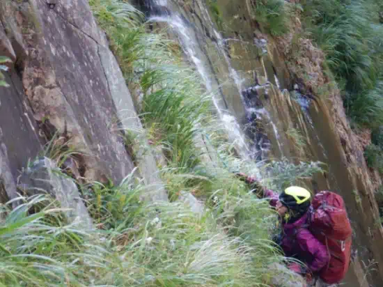最後の10m滝は記録通りに左側ルンゼから大きく高巻いた。この巻きはナンシーと2人でルートをあーだこーだ言いながら進み、とても勉強になった。