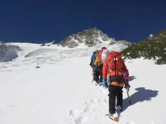 ロープウェイを降りて外で準備をする、周りにも雪稜らしき装備のパーティーがちらほら。足慣らしやロープトレにサギダル尾根は人気との事で皆サギダル尾根に行くのかしら、とやや焦る。