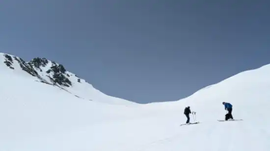 山荘の脇で滑走準備をしてカールに飛び込む。面ツルの広い広いカールの中を滑る。幸せを噛み締めながらターンを刻む。