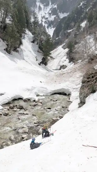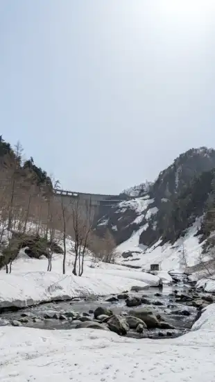最後のダム入口まで登る途中、巨大な雪の塊が落ちてくるが無事にダムに到着。感無量です。ありがとうございました。